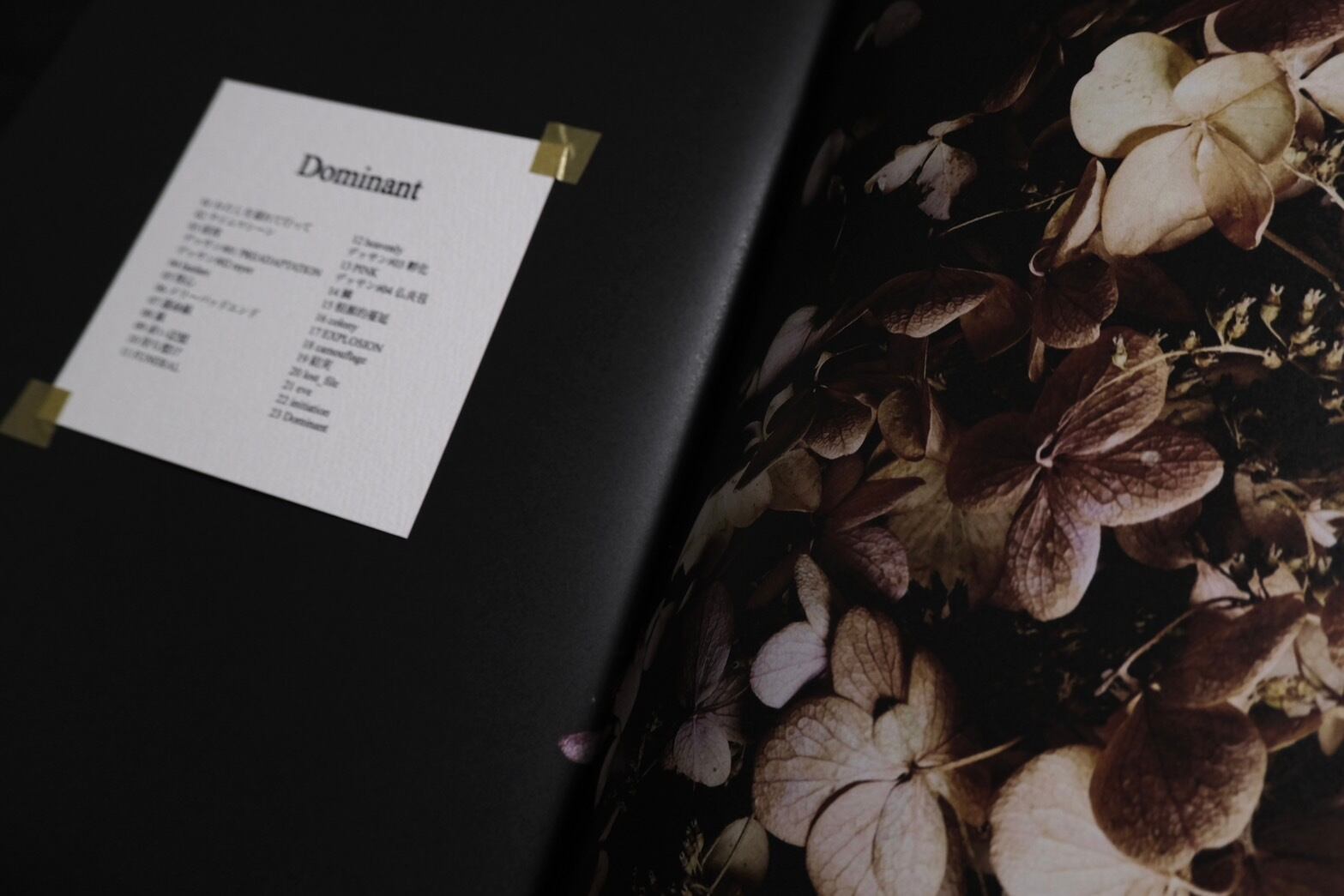 2024年の1年間に撮影した花束の写真を1冊にまとめました。デッサンプリント付、表紙のタイトルは手描きです。支配的なゴールド。初版限定の装丁となっております。